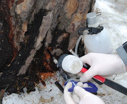 Служба СЭС по уничтожению короеда-типографа в городе Дзержинский.